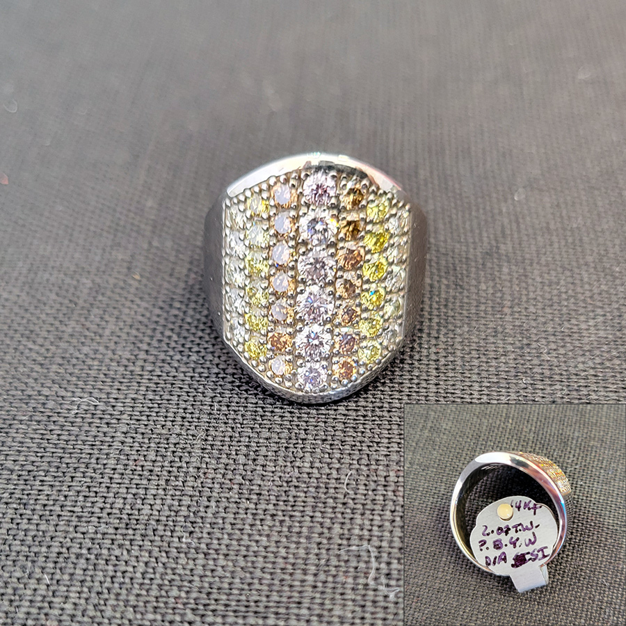 John Wallick Jewelers: 14kt white gold, multi-colored diamond ring.